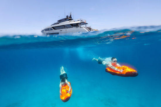 Riva’s fibreglass flagship is the latest masterpiece to grace and further strengthen the flybridge fleet, adding to it her boundless beauty and enviable performance. FIGURATI’s ultra-sporty, elegant and sleek Italian design has been paired with cutting-edge technology to offer a truly elite cruising experience.